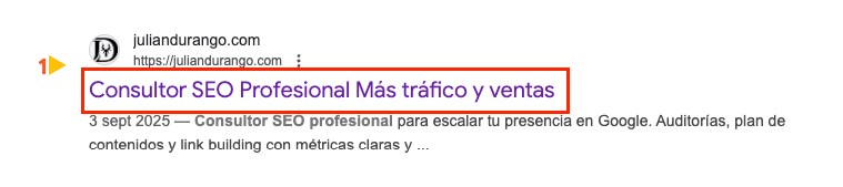 - Meta título (title tag): es el texto principal que aparece como enlace en los resultados de búsqueda de Google. Representa el primer contacto del usuario con tu página.