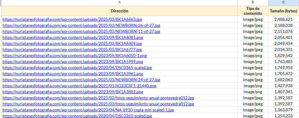 | Imágenes pesadas | Cómo encontrar imágenes que ralentizan la carga y afectan los Core Web Vitals. |
